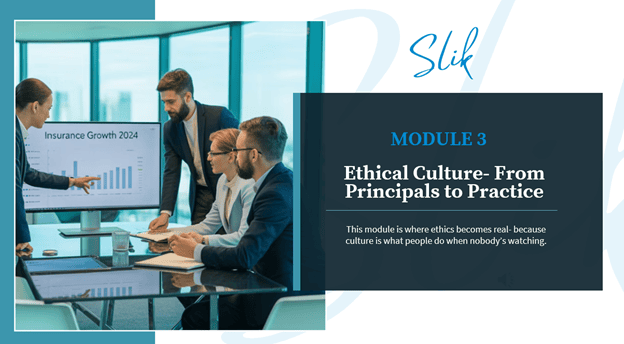 Ethics in Insurance is a 4-module online course designed to strengthen ethical judgement, regulatory awareness, and professional responsibility - equipping insurance professionals to act with integrity, transparency, and client first accountability.